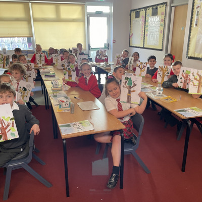 We had such a lovely few days in Torquay in Devon with one of our favourite author/illustrators Neal Layton working in collaboration with Devon Wildlife Trust and their Saving Devon's Treescapes team. Year 3 children from two local primary schools all thoroughly enjoyed this beautiful project all about the magic of trees! Each day started with a super special assembly with plentiful tree facts - did you know the oldest tree in the world is nearly 5000 years old? - and stories and live drawing, followed by a thoroughly engaging and fun collage workshop run by Neal in the classroom. We gave each child their own copy of The Tree to take home and keep.