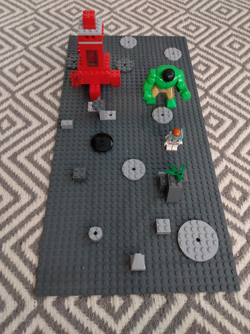 Using Lego, create the surface of Mars, a spaceship, a monster and an astronaut. Then have fun using your creations to retell the story!