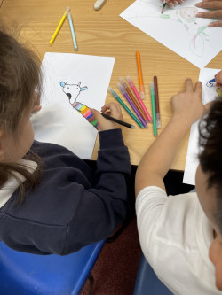 Draw the creature on card or paper, then cut it out and attach it to a lollipop stick or a strip of card. Finally, insert the stick/strip into the slit of the crater and your pop-up picture is ready!