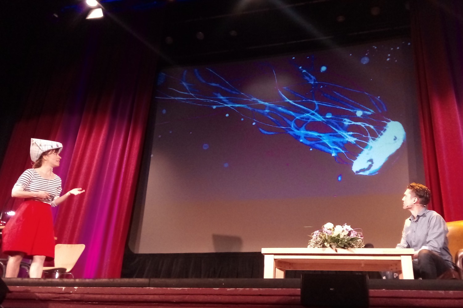 Dressed in stylish nautical stripes and colours and with a beautifully made paper boat hat on her head, Victoria talked to over 450 children and their teachers about how she made the illustrations for The Real Boat. Children were fascinated by Victoria’s stories of growing up in a freezing cold part of Russia and her utter delight when she first saw the sea as a child, a love that has stayed with her and influenced much of her artwork. Victoria drew live for us and children loved guessing what she was creating before their very eyes. The actor Samuel John gave a lively and fun reading of The Real Boat bringing to life all the characters that the paper boat meets on its journey to the sea.