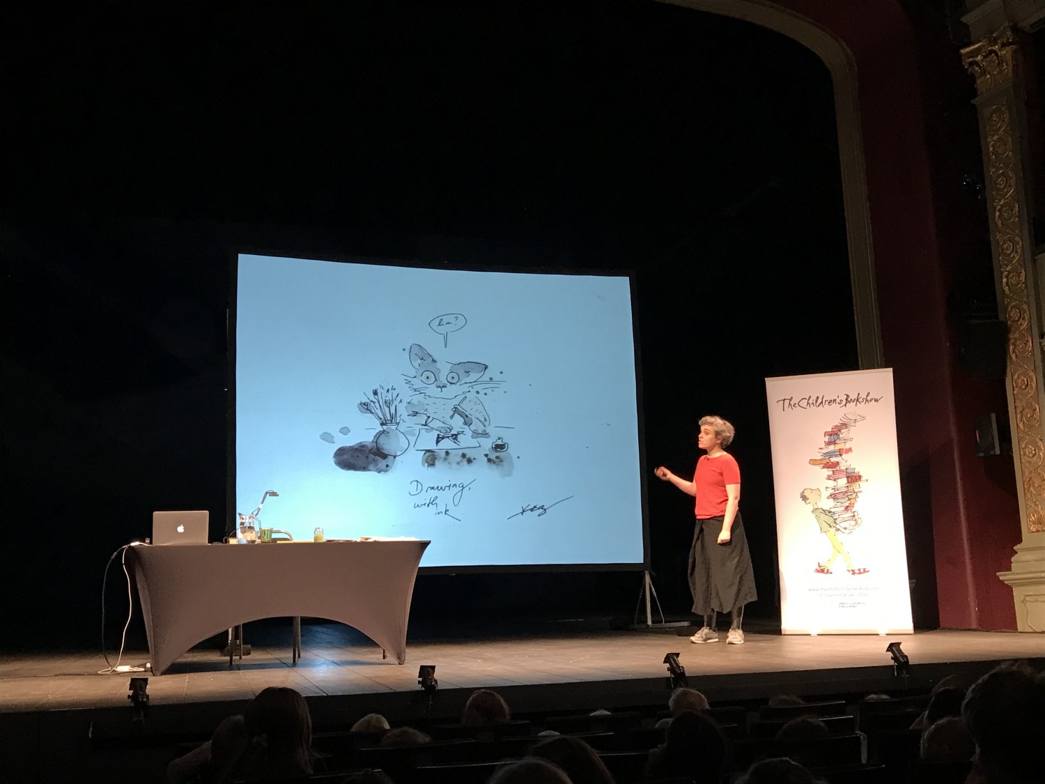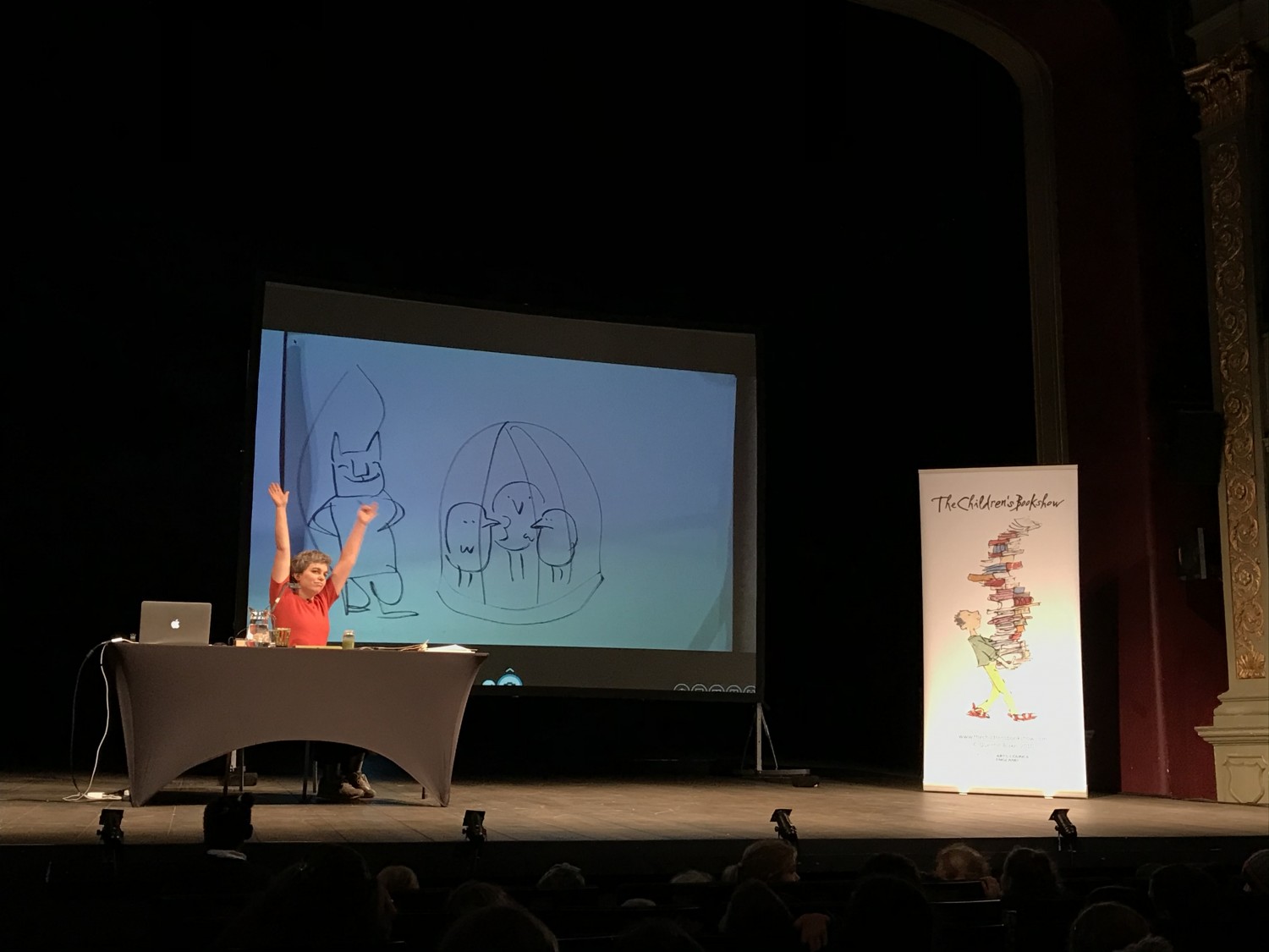 Built in 1766, Bristol Old Vic is the oldest continuously working theatre in the English speaking world, so we were very pleased to have our performance with author and illustrator Viviane Schwarz there. The auditorium is beautifully decorated with gold cornicing and green seats, and was a real treat to behold.