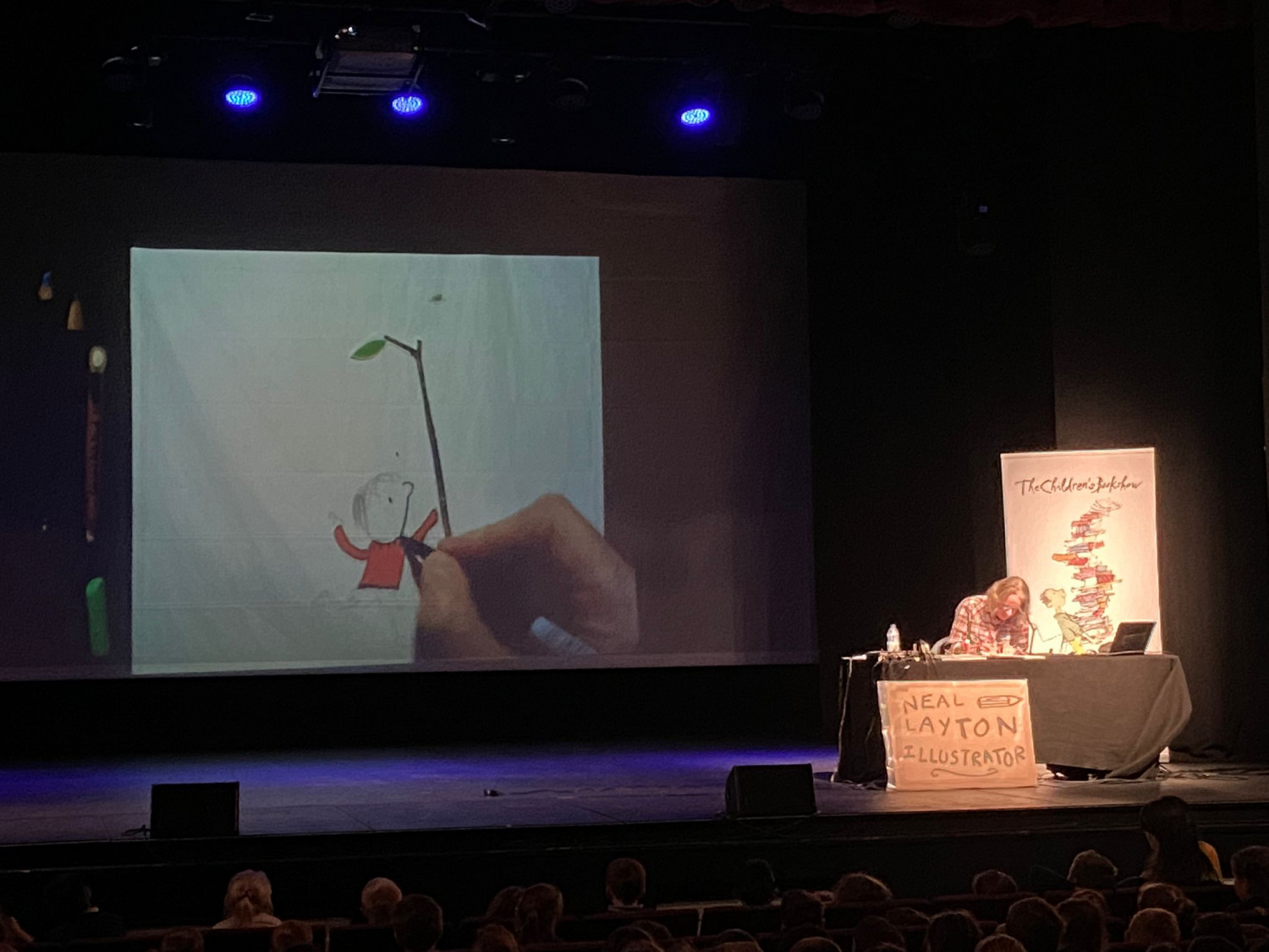 Neal showed us Stanley’s actual stick, and then recreated boy Stanley, jumper and all, on the blank page. It's always amazing to see an illustrator draw live, and there was an audible gasp from the children as Stanley emerged from nowhere, ready for his adventures.