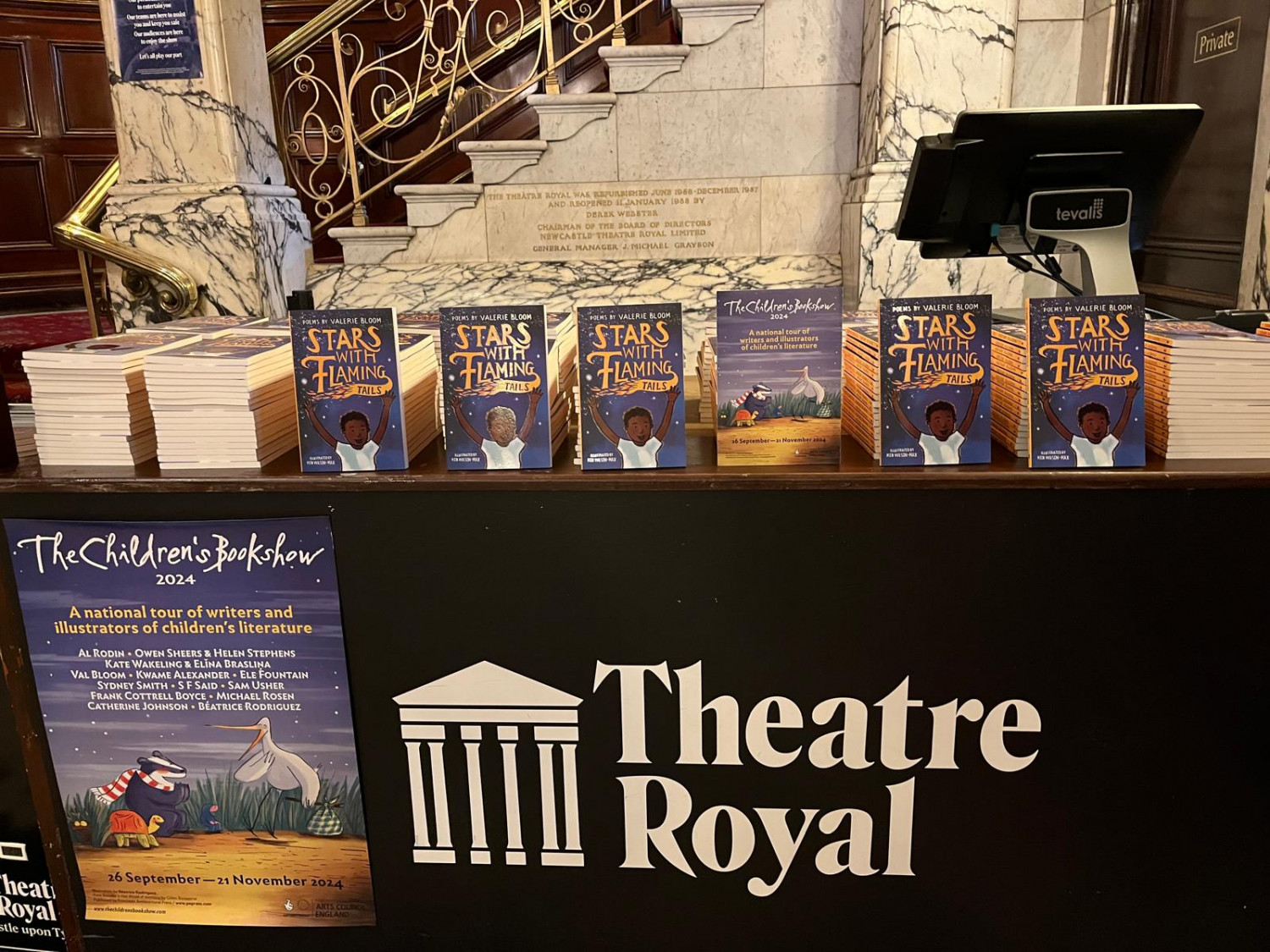 Here's a snapshot of our totally marvellous morning with superstar poet Valerie Bloom at the Newcastle Theatre Royal. The children loved joining in with Valerie's exuberant and interactive poetry. Lots of fun was had, lots of questions were asked and over 600 copies of Stars with Flaming Tails went home with new owners!