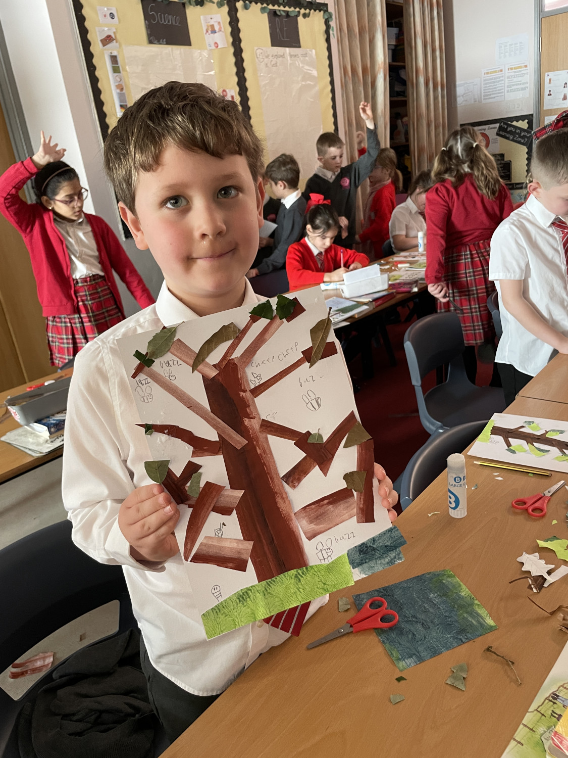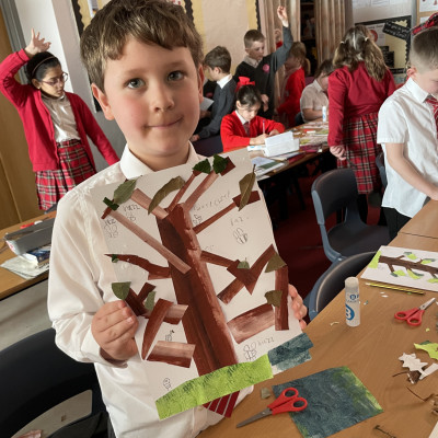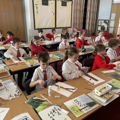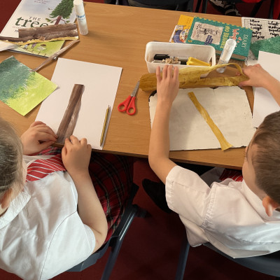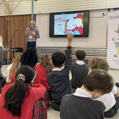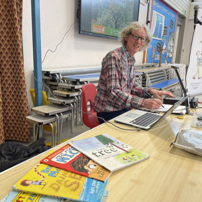 We had such a lovely few days in Torquay in Devon with one of our favourite author/illustrators Neal Layton working in collaboration with Devon Wildlife Trust and their Saving Devon's Treescapes team. Year 3 children from two local primary schools all thoroughly enjoyed this beautiful project all about the magic of trees! Each day started with a super special assembly with plentiful tree facts - did you know the oldest tree in the world is nearly 5000 years old? - and stories and live drawing, followed by a thoroughly engaging and fun collage workshop run by Neal in the classroom. We gave each child their own copy of The Tree to take home and keep.